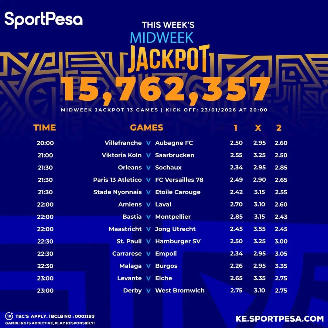 Sportpesa Midweek JP predictions: Playing on Friday, 23/01/2026: