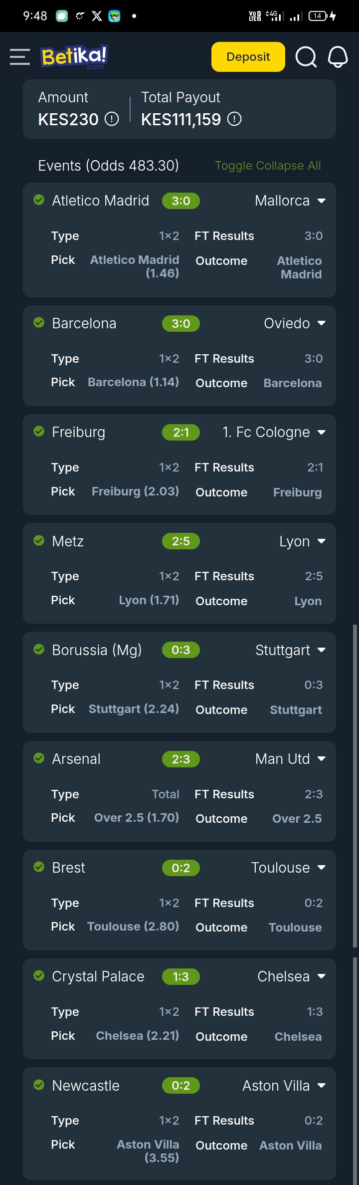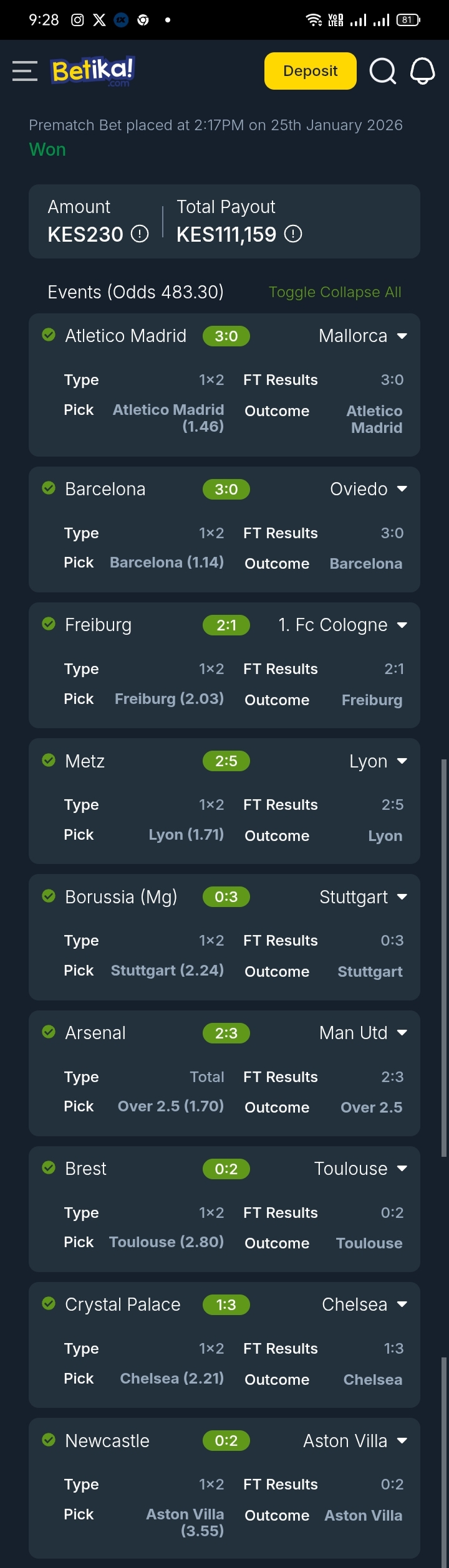 Sportpesa Midweek Jackpot results for 23/01/2026 Tayari: Kes. 72,575 was WON!!