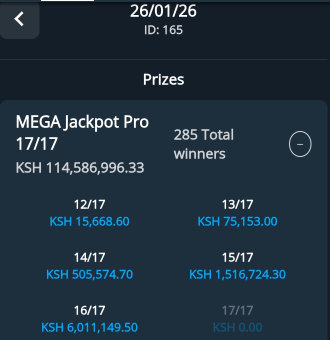 Sportpesa Mega Jackpot result and bonuses for Mega JP 25/01/2026— kes. 6,011,149 was won!