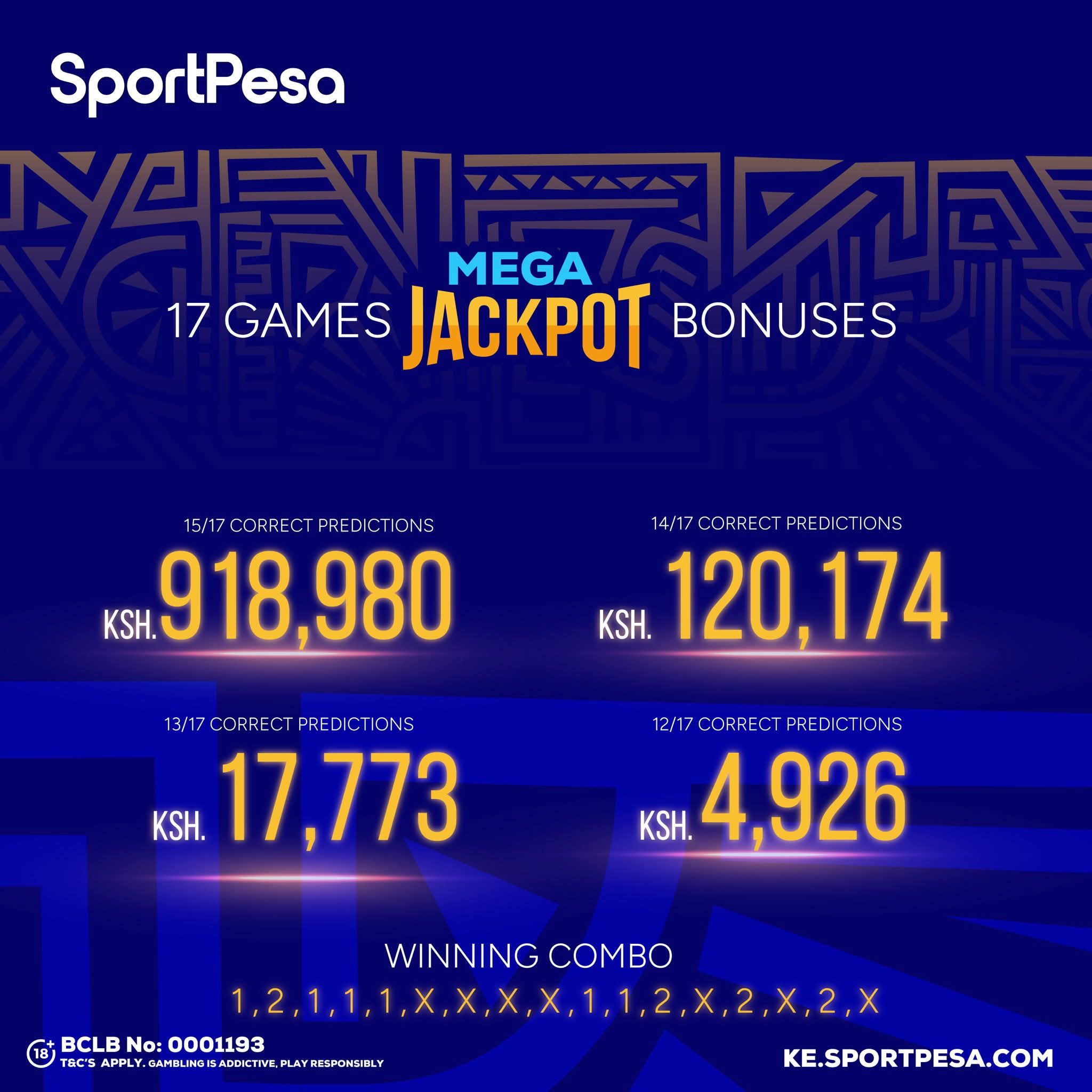 Sportpesa Mega Jackpot result and bonuses for Mega JP 21/12/2025— kes. 457,668 was won!
