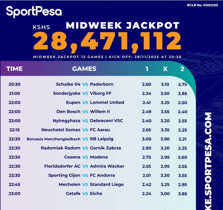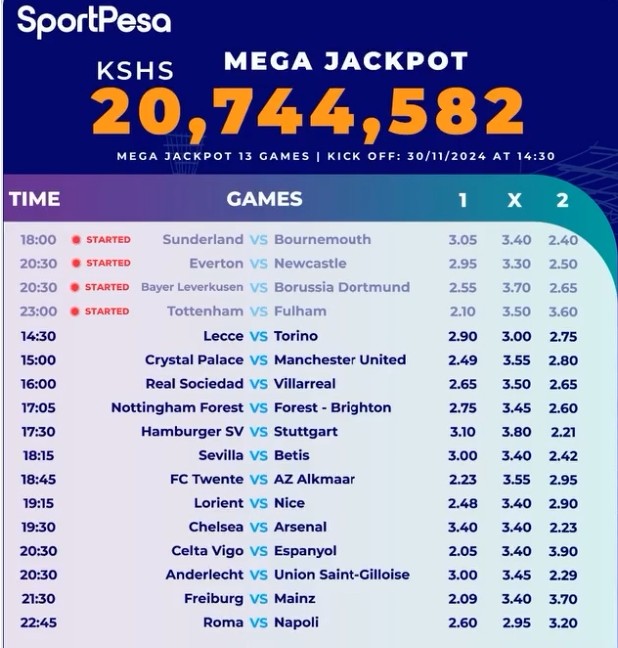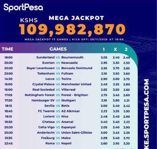 Sportpesa Mega Games & Predictions: Ksh 121.3 M up for grabs on 29/11/2025