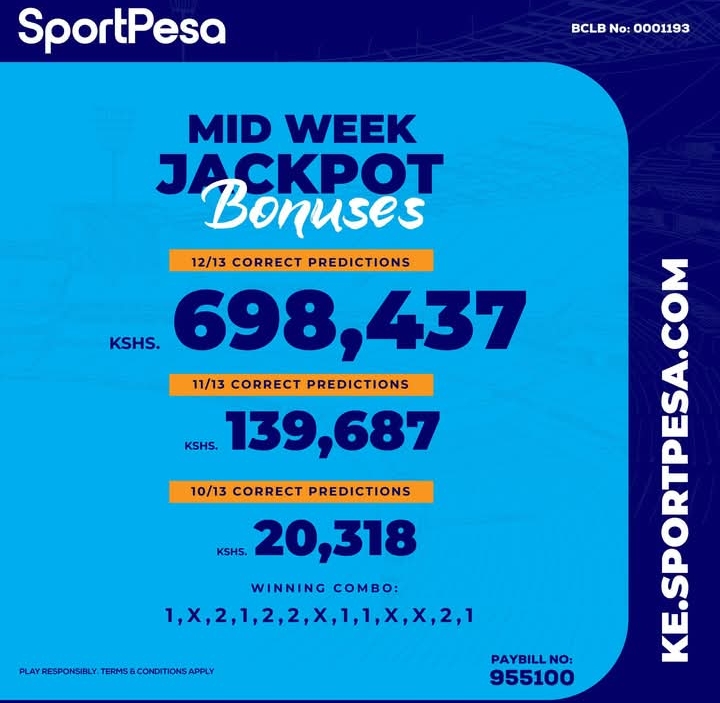 ALL eyes are on Sportpesa Midweek JP playing from 9PM to 12:30 AM. We are seeing 28.4 M being WON!