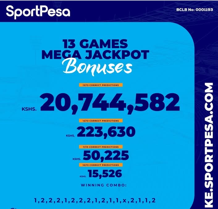 Congratulations! Sportpesa 13 Pro Mega Jackpot results: Kes. 20,744,582 was WON!