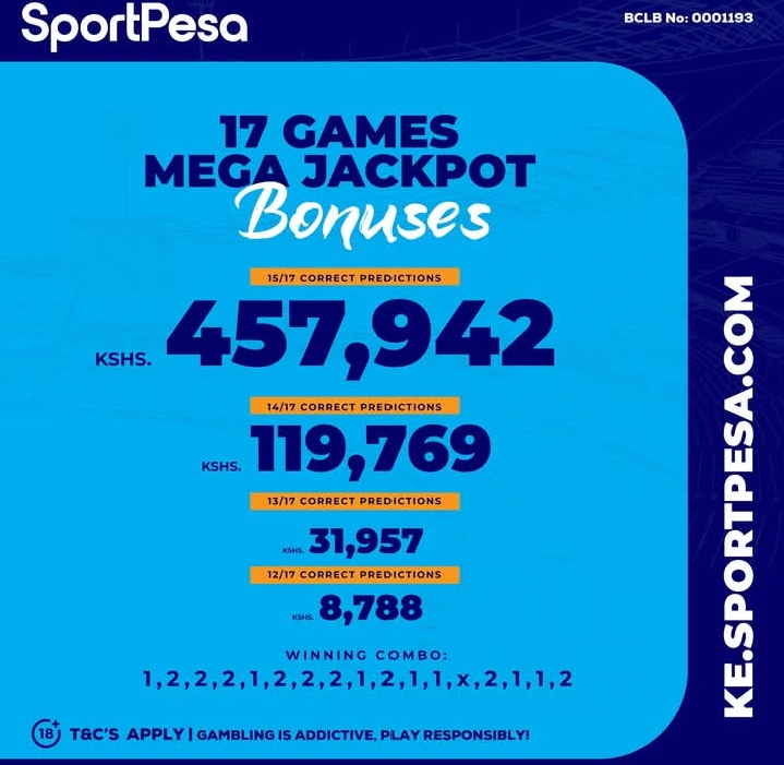 Sportpesa Mega Jackpot result and bonuses for Mega JP 30/11/2025— kes. 457,942 was won!