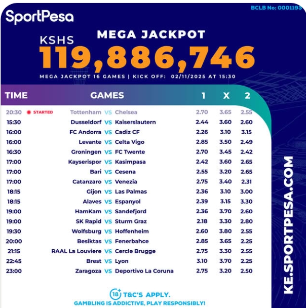 Sportpesa Mega Games & Predictions: Ksh 119.8 M up for grabs on 1/11/2025