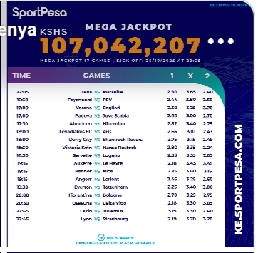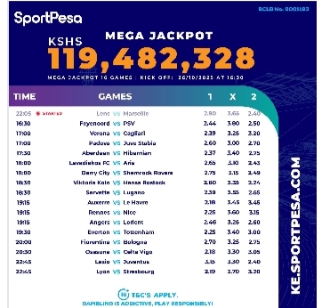 Sportpesa Mega Games & Predictions: Ksh 119 M up for grabs on 25/10/2025