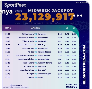 Sportpesa Midweek JP predictions: Playing on Friday, 31/10/2025. Win 23 M