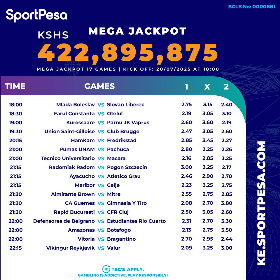 • Home of Sportpesa Mega & Midweek Jackpots