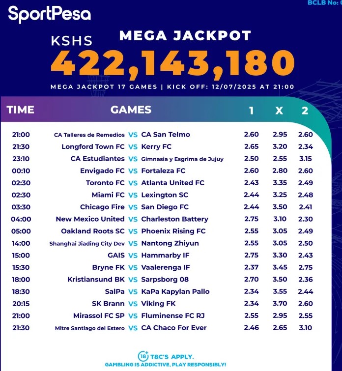 Sportpesa Midweek JP predictions: Playing from Thursday, 17/07/2025. Win 12 M