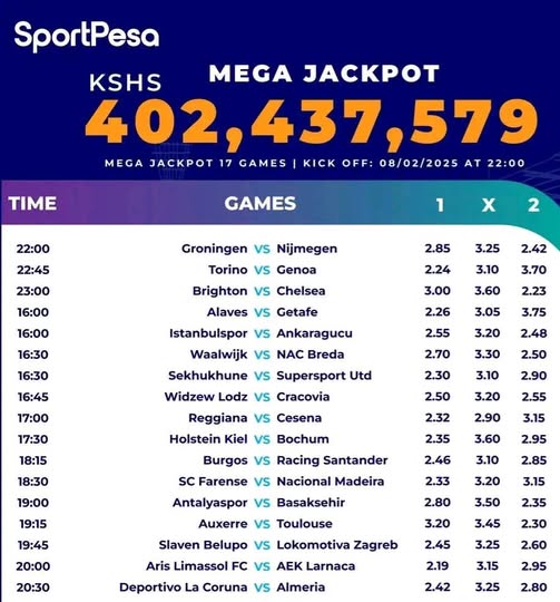 We have REVISED our rates downwards! Win Ksh 15.5 M or juicy bonus in sportpesa midweek playing on: 07/02/2025