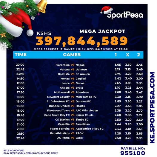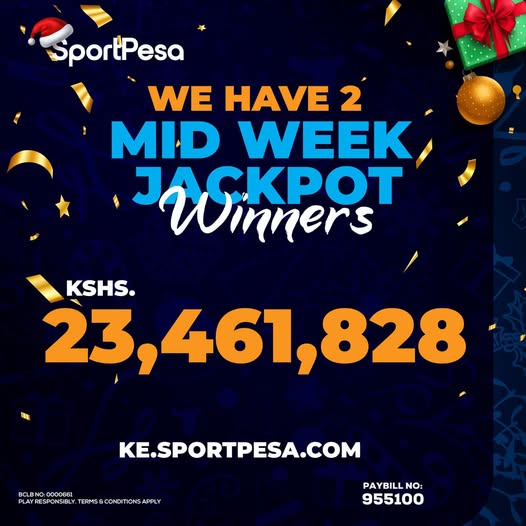 Win Ksh 23 M or juicy bonus in sportpesa midweek playing on: 01/01/2025