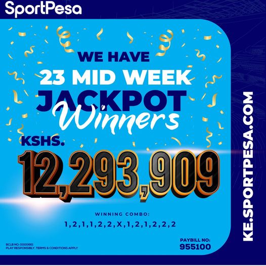Congratulations! Sportpesa Midweek Jackpot result and bonuses — Ksh 1,292,815 bonus WON
