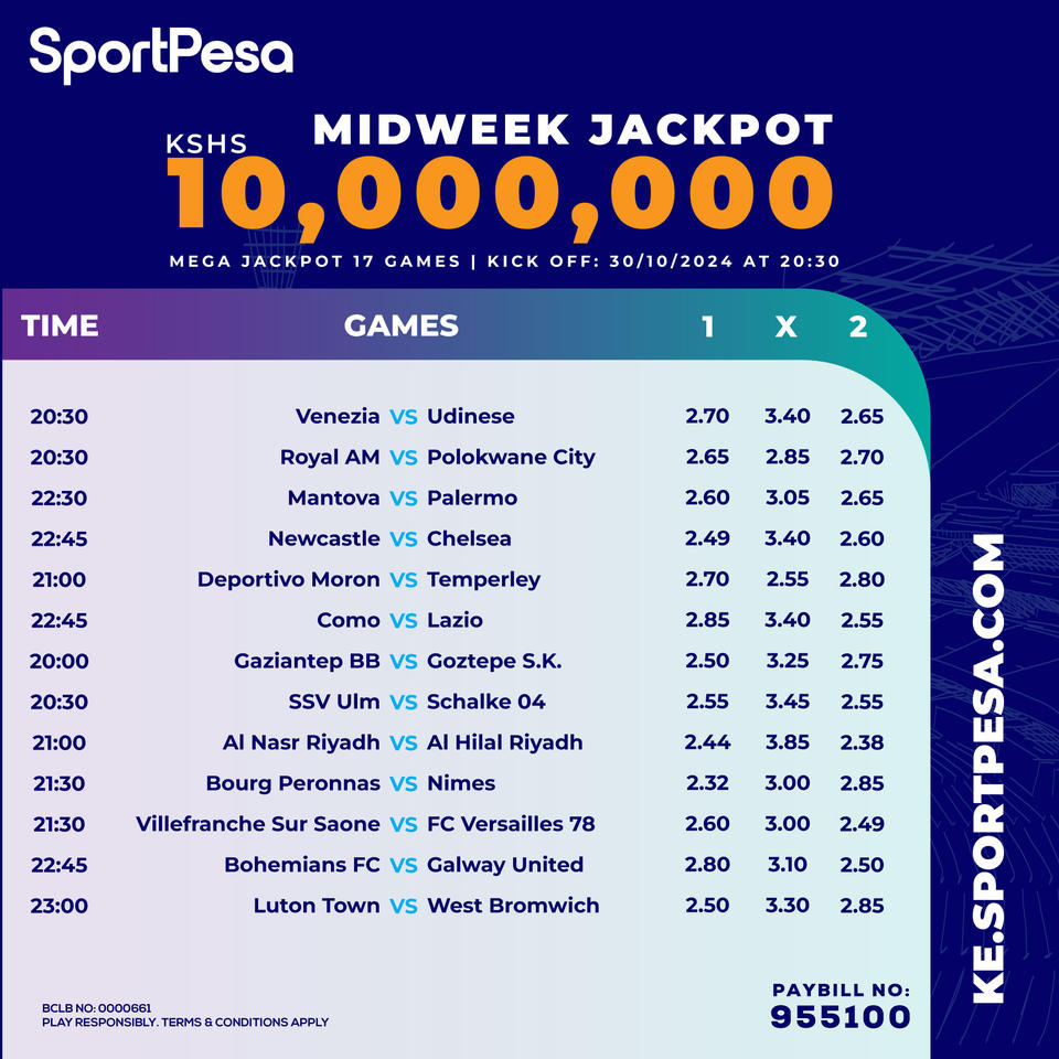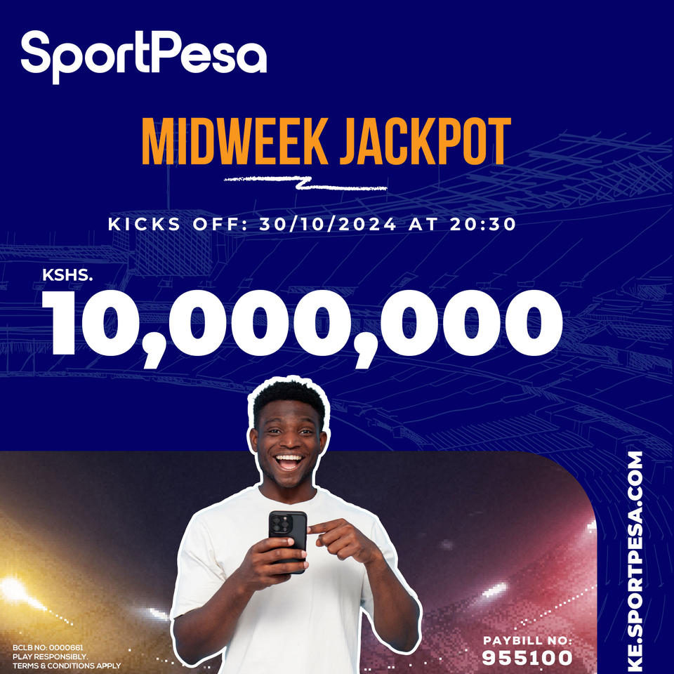 Win Ksh 10 M or juicy bonus in sportpesa midweek playing on Wednesday: 30/10/2024