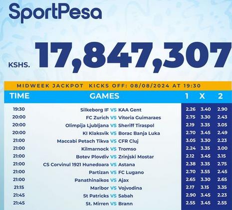 Win Ksh 17.8M or juicy bonus in sportpesa midweek playing Thursday: 08/08/2024