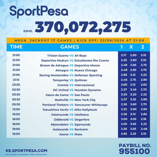• Home of Sportpesa Mega & Midweek Jackpots