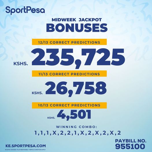 Win Ksh 32.582M in Sportpesa Midweek Jackpot for this week: 13/03/2024 or Juicy Bonuses