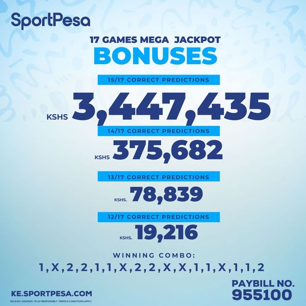 Congratulations! Sportpesa Mega Jackpot result and bonuses for Mega JP 16/03/2024— Ksh 3,447,435 bonus WON!