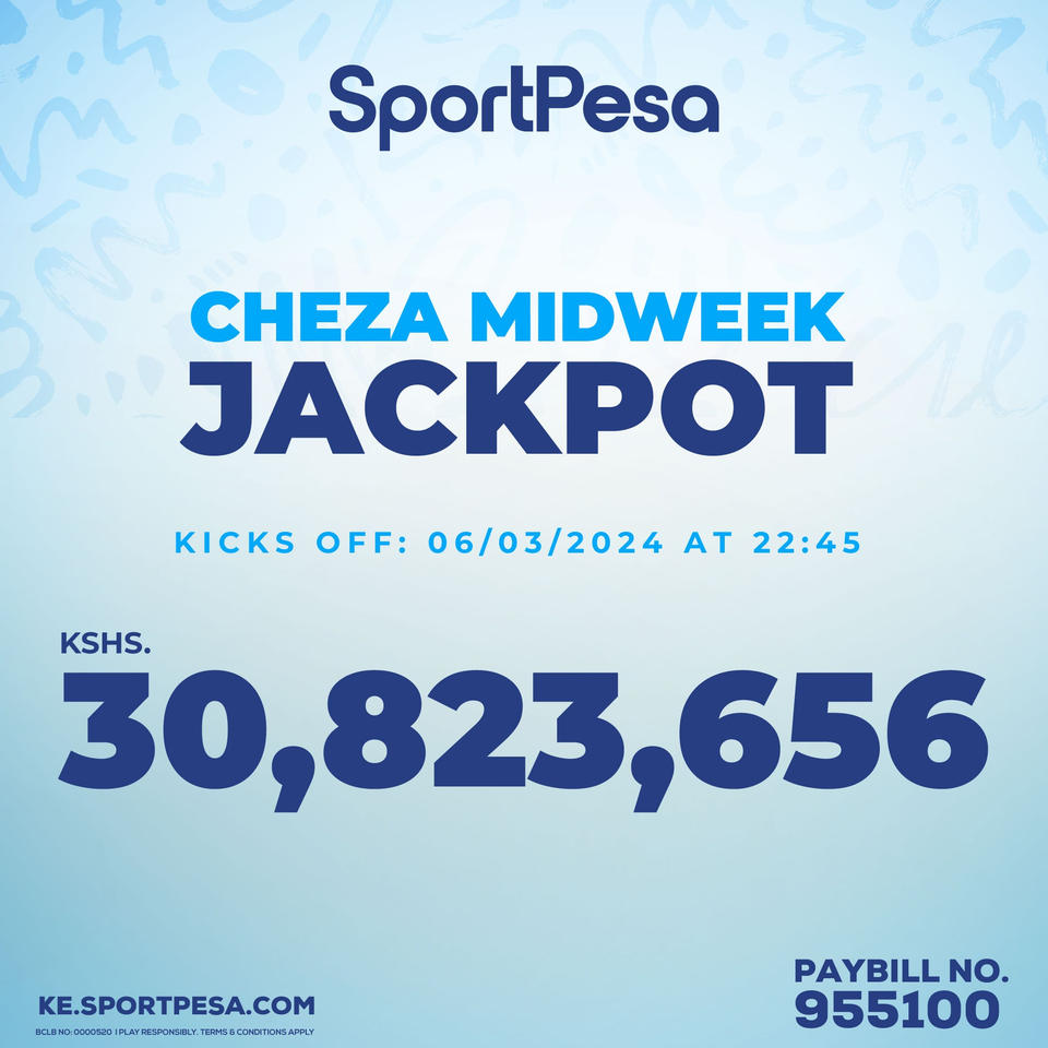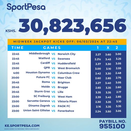 Sportpesa Midweek Jackpot for this week: 06/03/2024: Win Ksh 30.823M