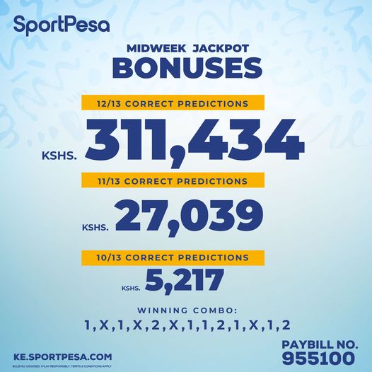 Congratulations! Sportpesa Midweek Jackpot results: Kes. 311,434 was WON!!