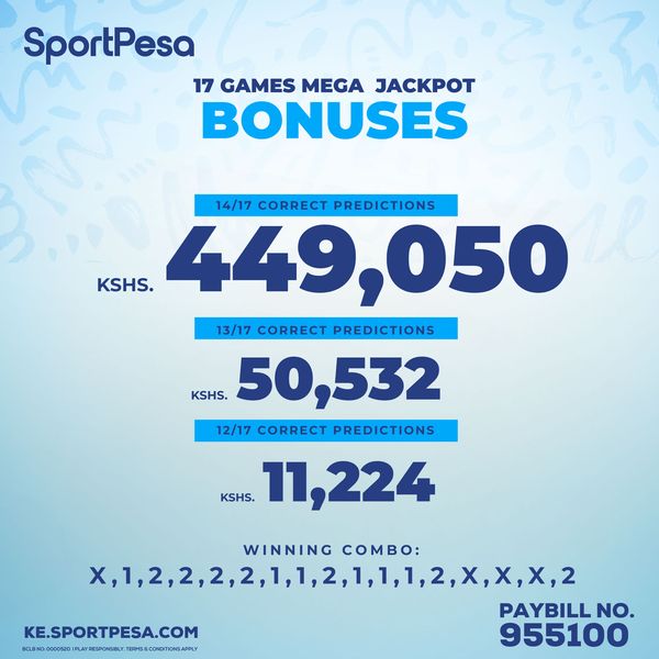 Congratulations! Sportpesa Mega Jackpot result and bonuses for Mega JP 09/03/2024— Ksh 449,050 bonus WON!