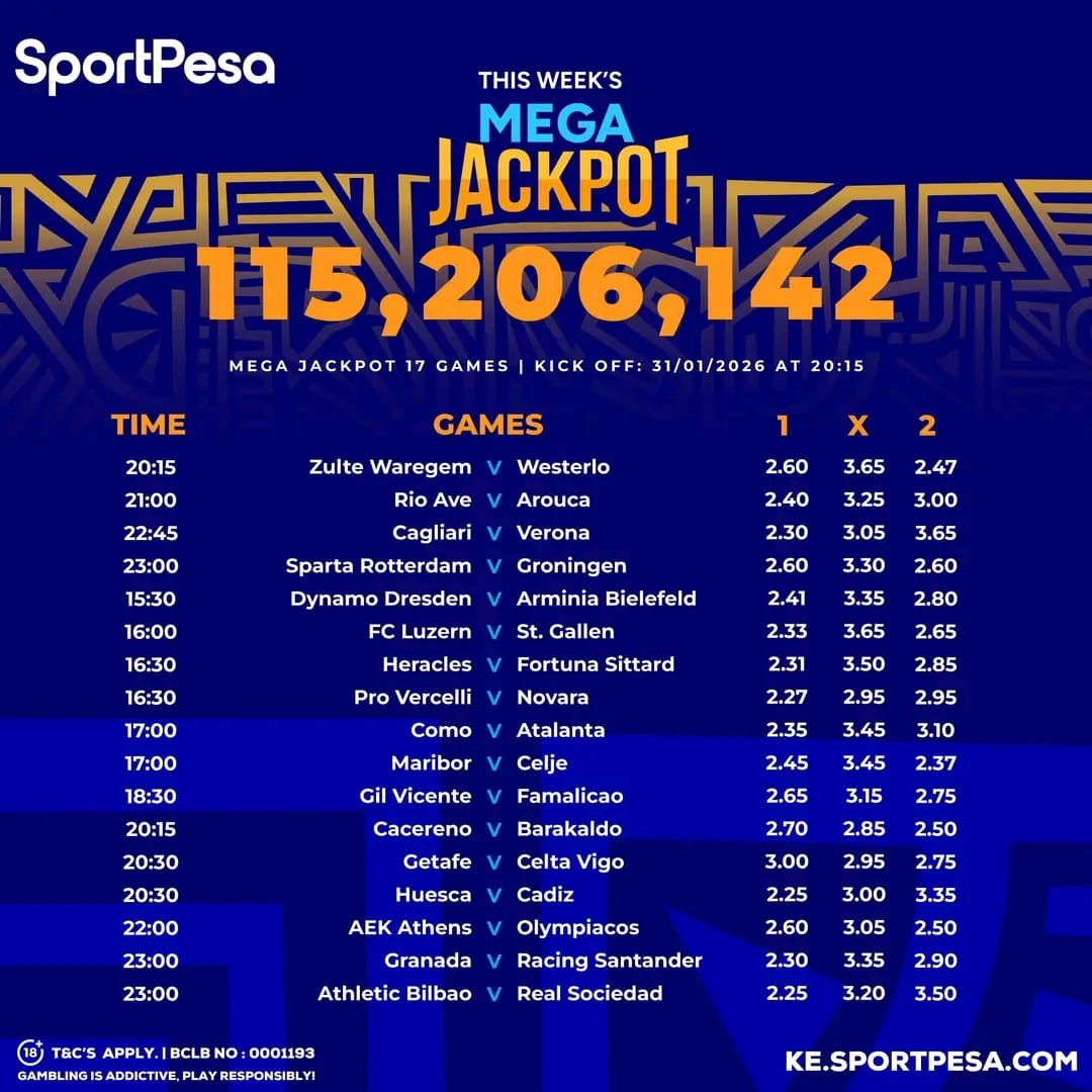 Sportpesa Mega Games & Predictions: Ksh 115 M up for grabs From Saturday 31/01/2026