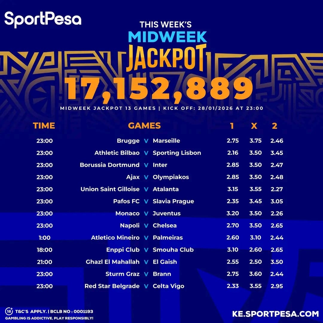 Sportpesa Midweek JP predictions: Playing from Thursday, 28/01/2026: