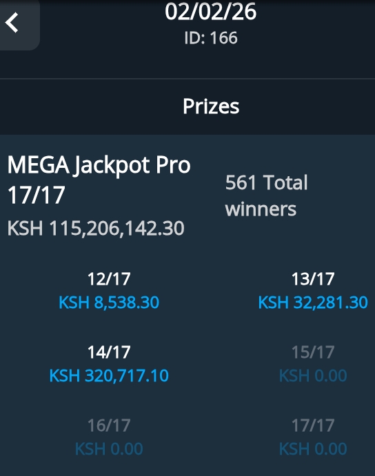 Sportpesa Mega Jackpot result and bonuses for Mega JP 02/02/2026— kes. 320,717 was won!