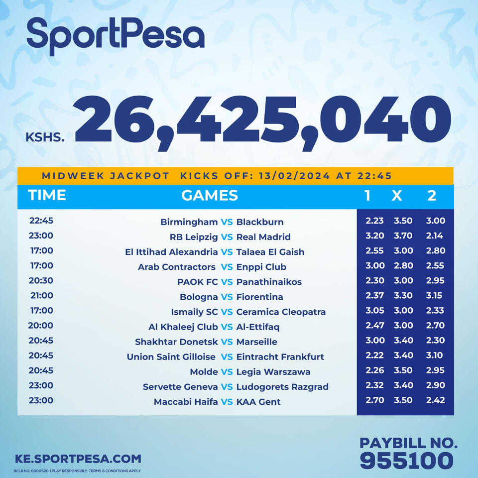 Sportpesa Midweek Jackpot for this week: 13/02/2024: Win Ksh 26.425M