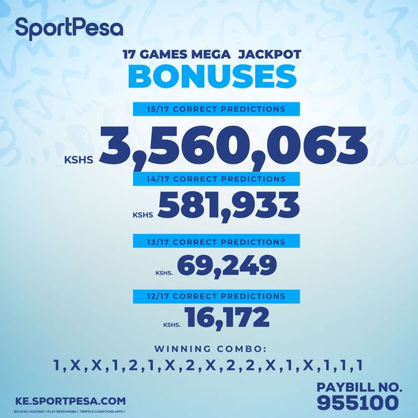 Congratulations! Sportpesa Mega Jackpot result and bonuses for Mega JP 10/02/2024— Ksh 1,346,708 bonus WON!