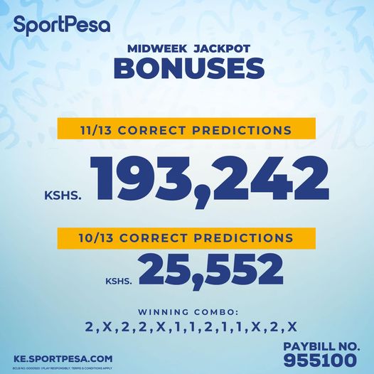 Congratulations! Sportpesa Midweek Jackpot results: Kes. 193,242 was WON!!