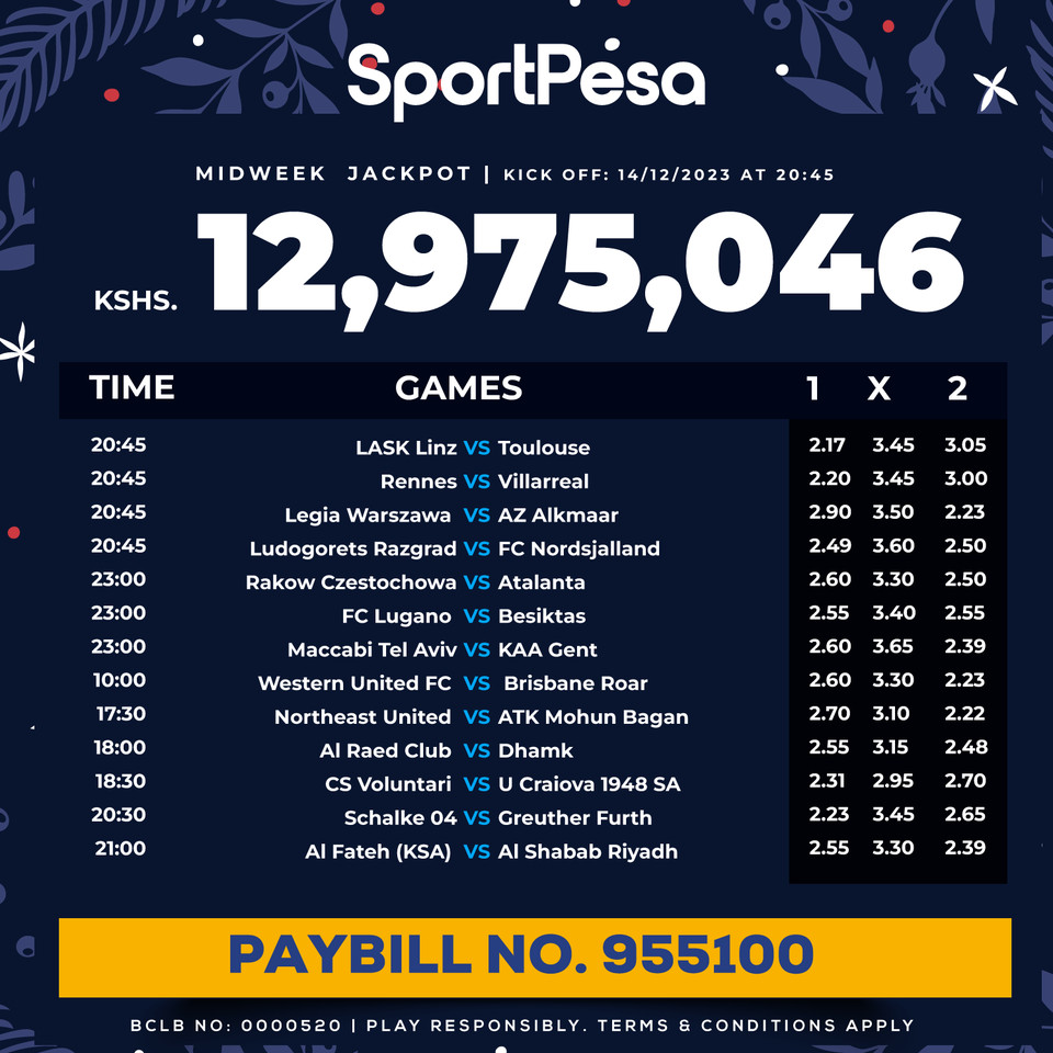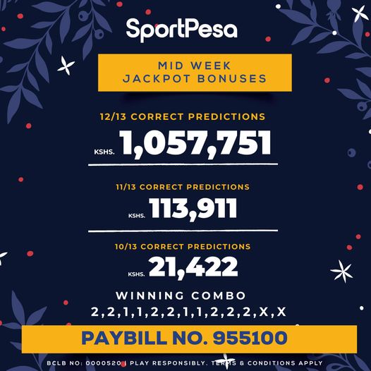 Sportpesa Midweek Jackpot for this week: 14/12/2023: Win Ksh 12.975M