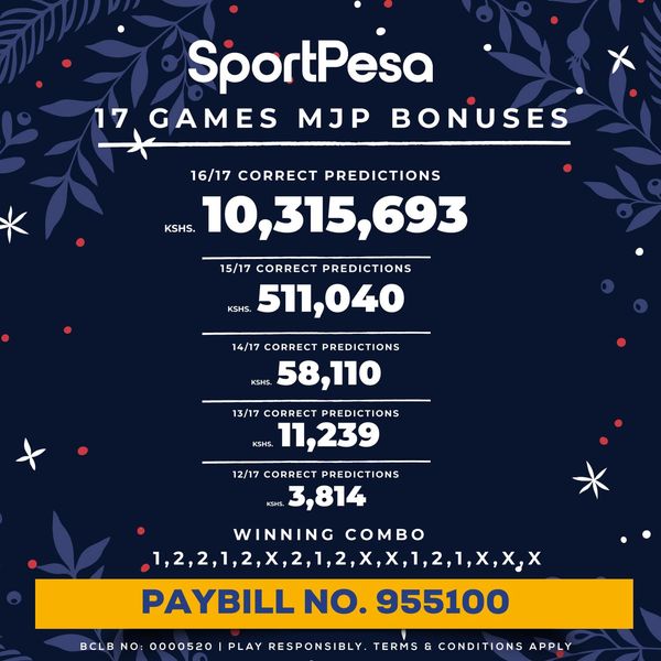 Sportpesa Mega Jackpot Predictions (MJP) for this weekend, 16/12/2023: Win Ksh 340.484M