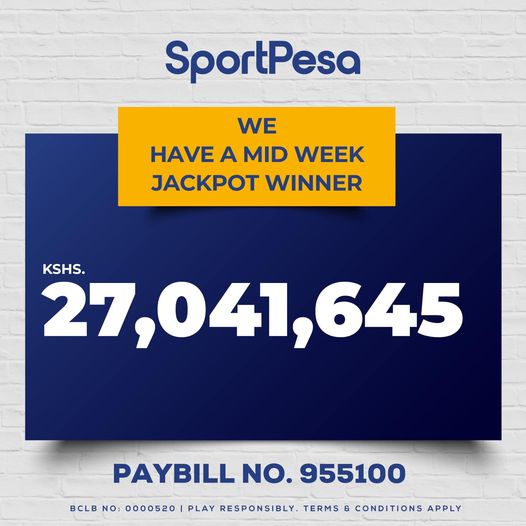 Congratulations! Sportpesa Midweek Jackpot results: Kes. 27,041,645 was WON!!